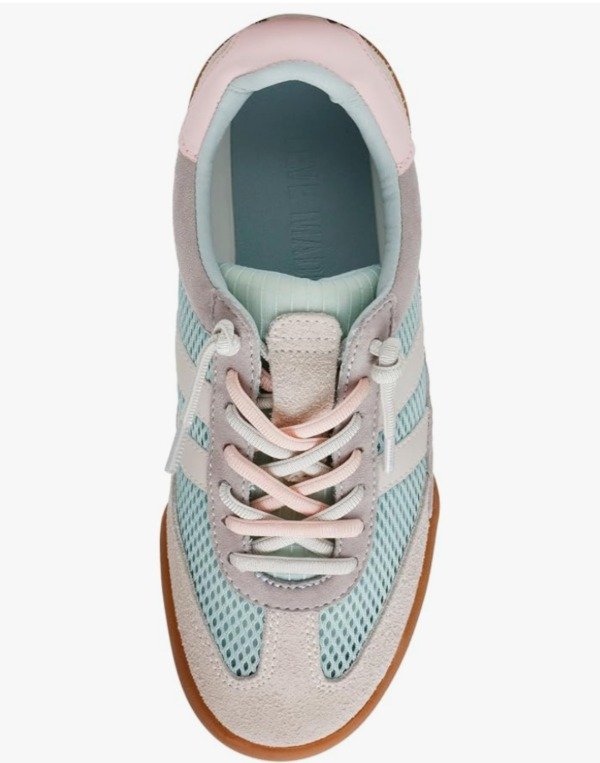 Las zapatillas Steve Madden Veredict combinan diseño moderno y comodidad en un estilo deportivo con aire retro. Confeccionadas en nylon, gamuza y materiales sintéticos, presentan una paleta de tonos turquesa, beige y rosado pastel que las hace únicas y súper combinables.